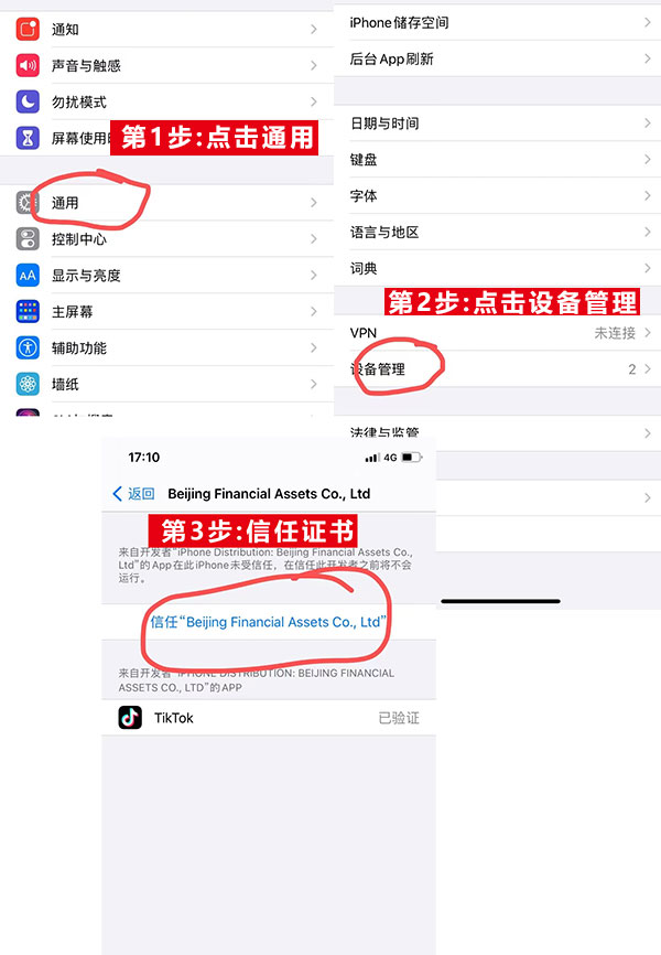 打开手机设置-通用-设备管理-安装不受信任证书即可使用 点开通用