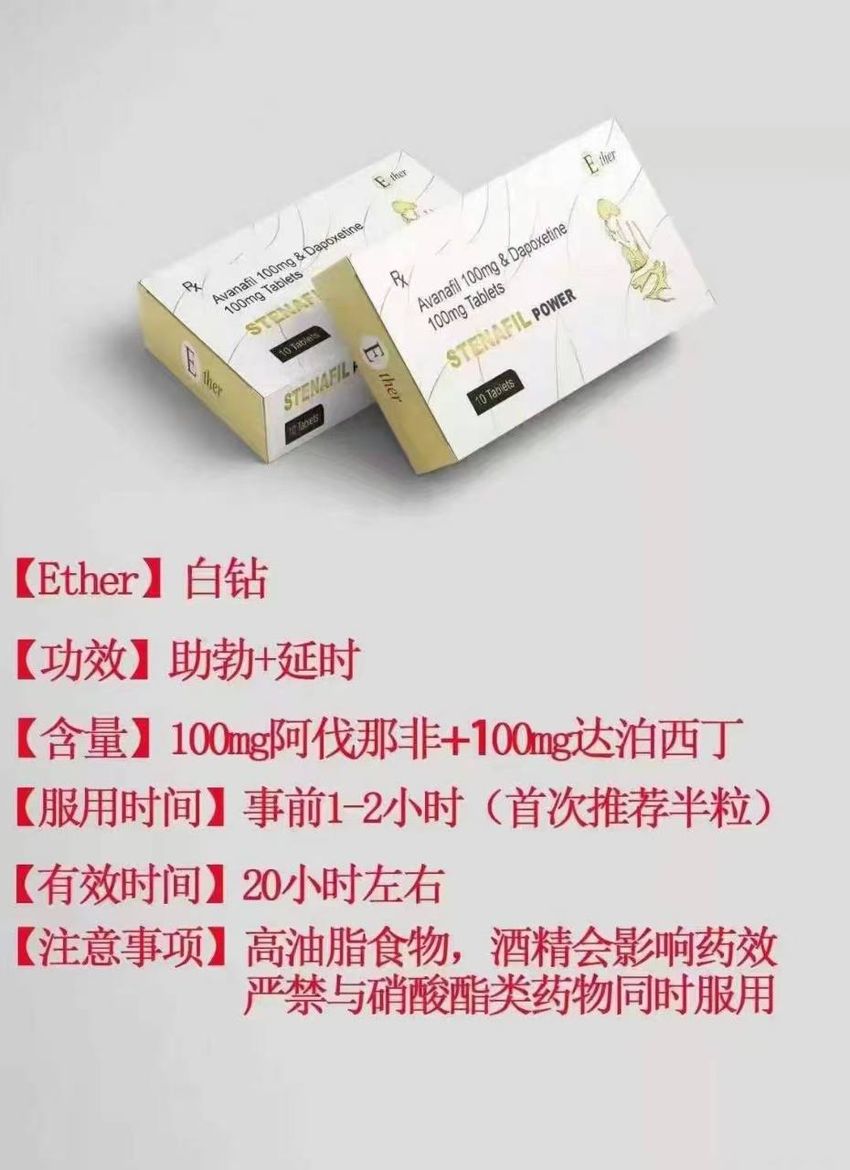 ◾白钻(双效) 温和无刺激,拒绝副作用,可以喝酒 ◾成分:阿伐那非100mg+必利劲10mg ◾功效:轻微助勃+超强两种作用 ◾规格:一盒10粒 ◾备注:少量人群服用时候有轻微头晕副作用。心脏病者禁止服用