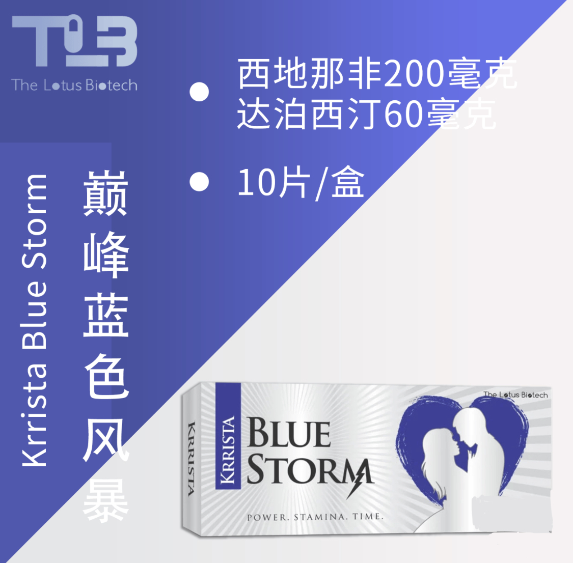 ◾蓝色风暴(双效) 由印度凯瑞斯坦药业生产,用于解决男性勃起和早泄的药物,此款目前是助勃剂量最高款双效,在加强助勃成分的同时减少了必利劲含量,适合对硬度有极致要求对延时要求比较低的用户,建议半粒服用 ◾成分:西地那非200mg +达泊西汀60mg ◾效果:强力助勃+延时 ◾特点:猛猛猛 ◾规格:一盒10粒