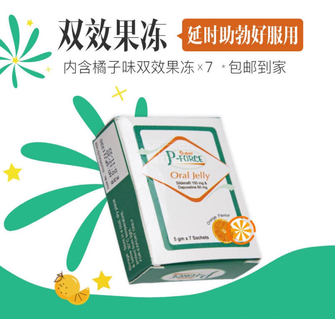 ◾绿果冻(双效) 用于解决男性勃起和早泄的药物,液体胶状果酱,非常适合服用片剂有恶心呕吐症状用户使用,分子结构小容易入口和吸收,且携带方便,服用不尴尬。 ◾成分:西地那非100mg+达泊西汀60mg ◾效果:助勃增硬+延时 ◾特点:吸收快 易携带 ◾规格:一盒7包