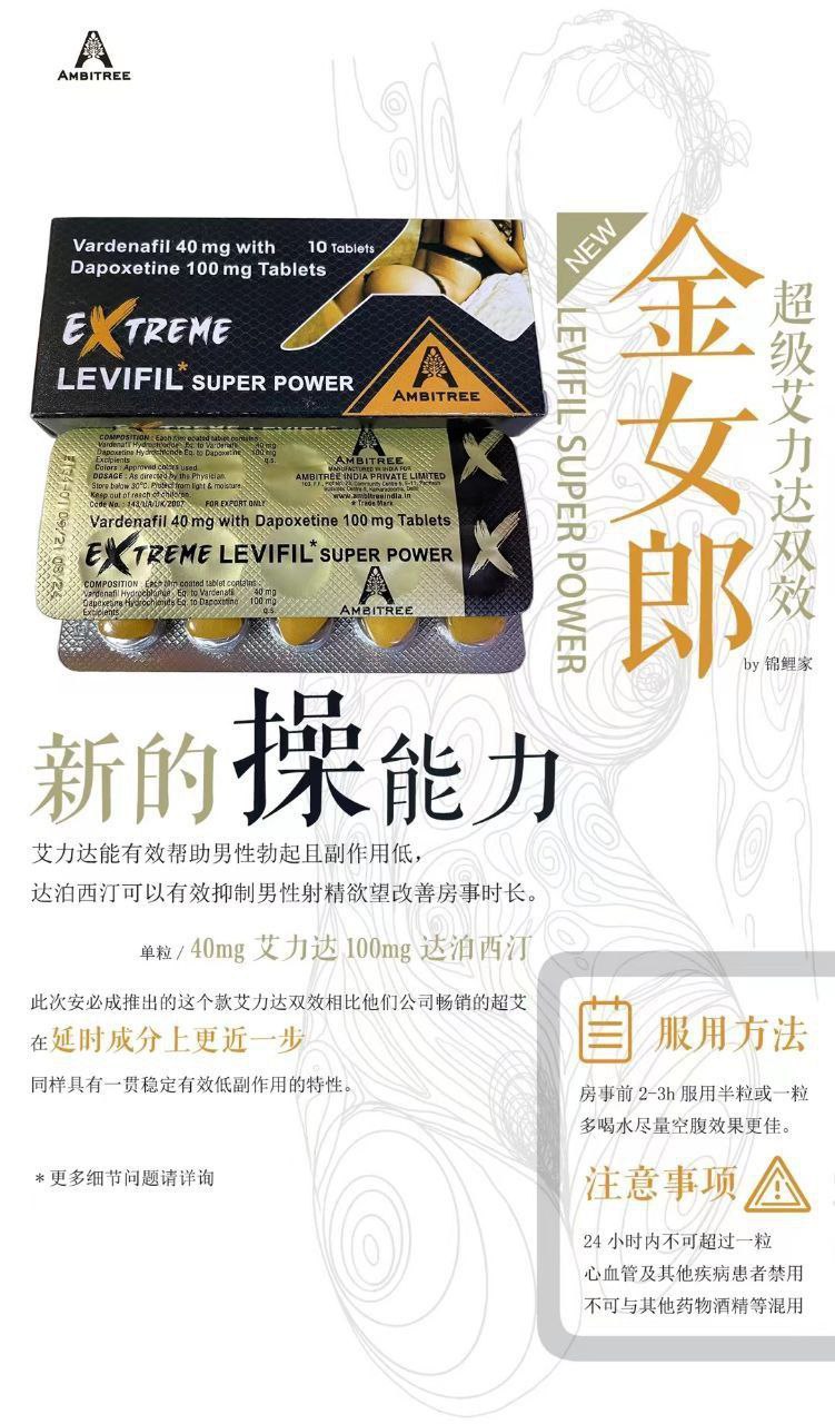◾金女郎(双效) 用于解决男性勃起和早泄的药物,由安必成药业生产,在超级艾力达原有60mg达泊西汀基础上增加了40mg延时剂量,更持久,适合时间基础较差的用户。 ◾成分:伐地那非40mg+达泊西汀100mg ◾效果:助勃增硬+超长延时 ◾特点:高效助勃 药效稳定 代谢快 ◾规格:一盒10粒