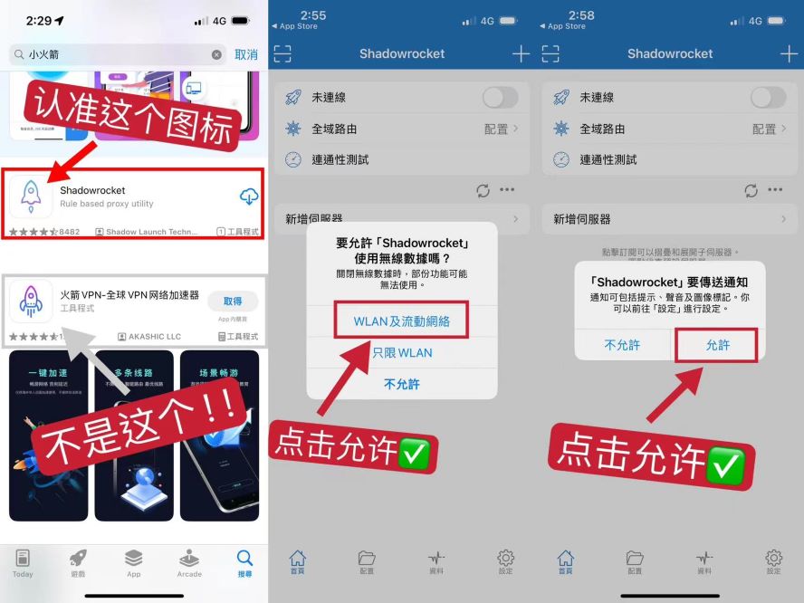 5、打开小火箭的连接开关按钮,点允许,注意这