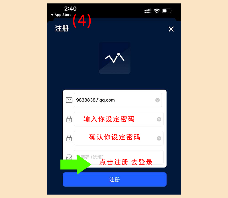 2 .如果新客就需要从新注册一下账号!输入自己的qq邮箱密码8位以上注册!
