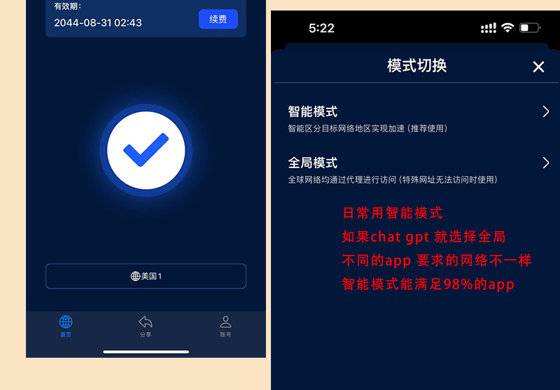 推荐使用智能模式   比如使用国内app 就不会占用这个流量的